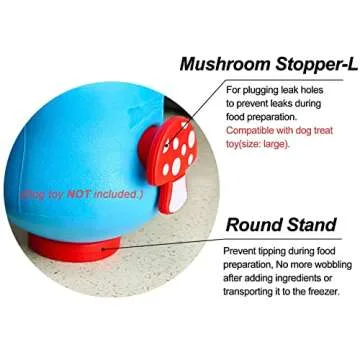 Show moreIntroducing the HOMDSG Mushroom Silicone Stopper and Holder, the ultimate solution for pet owners looking to enhance their dog's playtime with ease and efficiency. Designed specifically for Size L and XL dog enrichment toys, this product includes two whimsical mushroom-shaped plugs and two sturdy stands, ensuring that preparing your dog’s favorite treats has never been simpler. The food-grade silicone material is not only durable but also dishwasher safe, making cleanup a breeze. Whether you're using water, broth, or any special snack mix, these stoppers create a watertight seal that prevents leaks, allowing you to prep and freeze treats with complete peace of mind.