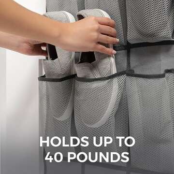 The organizer can hold up to 40 pounds, making it strong and durable for various items.