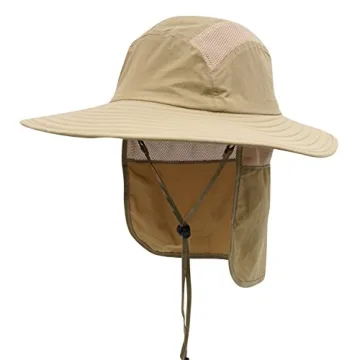 Home Prefer Adult UPF 50+ Sun Protection Cap Wide Brim Fishing Hat with Neck Flap Khaki
