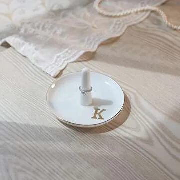 HOME SMILE Initials Ring Holder Jewery Tray with personalized K-Monogrammed Engagement Gifts for Friends,Birthday Mother's Day Christmas Gifts for Women,Ceramic White
