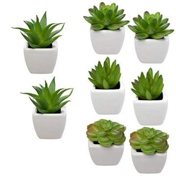 Home Trends Set of 8 Green Succulents Artificial, Mini Succulent Plants, Faux Succulents Potted in White Ceramic Pots