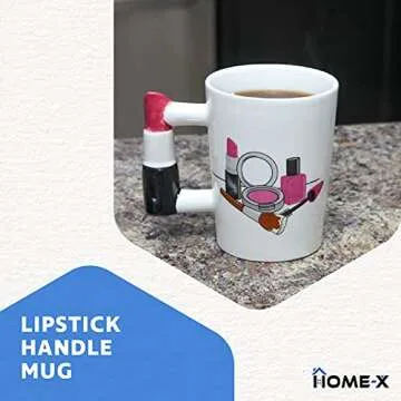While many mugs offer standard designs and functionalities, the HOME-X Lipstick Mug stands out with its whimsical beauty theme and unique lipstick-shaped handle which adds a fun element to everyday drinking. Competitors may provide plain options, but this mug combines functionality with charm, offering quality ceramic build and eye-catching design that make it a winner among novelty mugs.