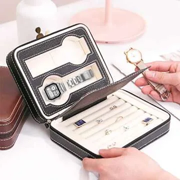 Homeater 2 Slot Watch Box Portable Travel Zipper Case Collector Storage Jewelry Storage Box (Black)