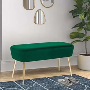 Homebeez 35" Length Velvet Bedroom Bench, End Bed Ottoman Bench with Golden Metal Legs, Dressing Chair for Entryway Living Room (Emerald Green)