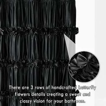 Homechoice Decor Black Ruffle Shower Curtain, Vintage Handcrafted Bow Tie Bath Curtain for Master Bathroom, Ruched Satin Bathroom Curtain with 12 Buttonholes, 72" W x 72" H (LQ-10)