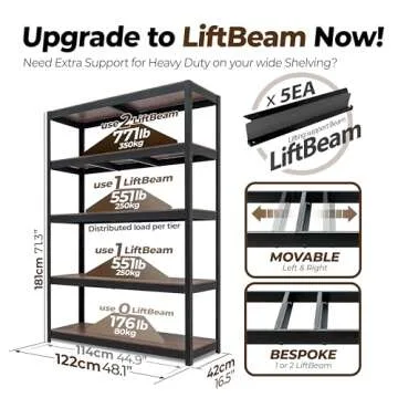 HOMEDANT House Z-Beam 48" Wide Boltless Heavy Duty Garage Storage Shelving Adjustable 5-Tier Metal Shelves Laminated Organization Shelf Industrial Utility Rack for Pantry Warehouse Office Store 1Pack