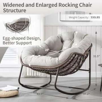 Show moreIntroducing the HOMEFUN Outdoor Patio Rocking Chairs, an oversized papasan rock chair designed to elevate your outdoor leisure experience. Built with an extra wide seat, this chair accommodates various body types, ensuring ample space for ultimate relaxation. The generous dimensions allow you to lounge comfortably, making it the perfect addition to your front porch, garden, or backyard. Its egg-shaped design harmoniously blends contemporary aesthetics with functionality, providing not just a seat but a statement piece for your outdoor setting.
