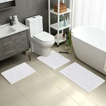 HOMEIDEAS 3 Pieces Bathroom Rugs, Ultra Soft Non Slip Absorbent Chenille Toilet Bath Mat Set (White)