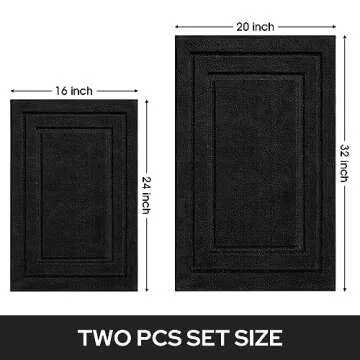 HOMEIDEAS Bathroom Rugs Sets 2 Piece, Super Soft and Absorbent Non Slip Microfiber Machine Washable Bath Mat Set (20" x 32" + 16" x 24", Black)