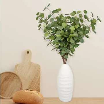 Show moreTransform your living space with the exquisite HomeKaren Eucalyptus Stems, a stunning collection of 6 artificial eucalyptus leaves measuring an impressive 27.5 inches each. Crafted with meticulous attention to detail, these lush, bendable branches allow you to unleash your creativity by easily shaping them to suit your decor needs. Whether you're creating a beautiful centerpiece in a vase or designing a one-of-a-kind DIY wreath, these eucalyptus stems provide the perfect touch of elegance and sophistication to any setting.