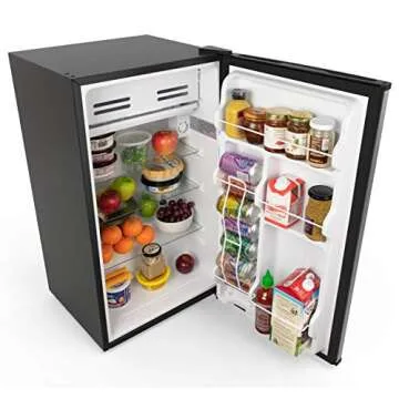 Equipped with an adjustable thermostat knob, this mini fridge offers three temperature settings: **Max**, **Med**, and **Min**. Whether you're freezing ice in the chamber or keeping your drinks at the optimal coolness between 33°F and 35°F, this fridge delivers performance tailored to your preferences. The generous interior layout helps you organize everything from food to beverages efficiently, allowing you to maximize storage in a confined space.