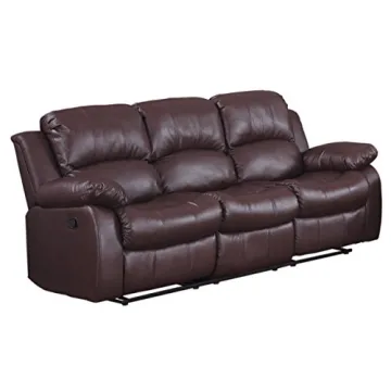 Show moreThe Homelegance Resonance 83" Bonded Leather Double Reclining Sofa is the perfect blend of style and functionality, designed to elevate your living space while providing unmatched comfort. Upholstered in rich, brown bonded leather, this elegant sofa enhances your home decor, all while featuring a versatile modular design that is easy to assemble and move. Each component is lightweight, ensuring effortless repositioning in tight spaces like basements or up staircases. The sofa prominently features three individual seat backs and plush overstuffed arms that cradle you in comfort. With the lever action reclining mechanism, transitioning to a reclining position is incredibly smooth, making this sofa your ultimate relaxation haven.