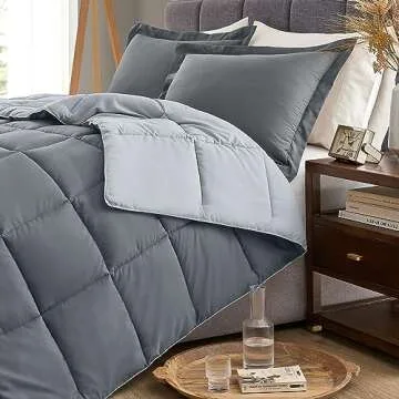 Versatility is a hallmark of this set, allowing you to enjoy two moods with one comforter thanks to its reversible design featuring dark gray on one side and light gray on the other. Perfect for changing up your bedroom aesthetic, this comforter works beautifully with various bed sheets and decor styles. Whether you're looking for a light blanket for summer or a snuggly layer for winter, this all-season comforter adapts to your needs.