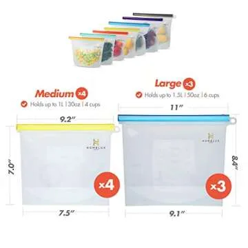 HOMELUX THEORY Reusable Freezer Bags, 7Pcs Large & Medium Reusable Ziploc Bags Silicone Airtight & Leakproof, Reusable Silicone Food Storage Bags, Silicone Snack Bags For Travel & Camping (3L, 4M)