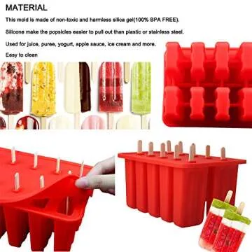 Forget about difficult-to-remove molds and messy spills; our user-friendly design ensures that getting your popsicles out is a breeze. The silicone material provides the flexibility you need, meaning your tasty creations will pop right out with a simple squeeze. Plus, the thoughtful inclusion of a brush makes caring for your molds easier than ever!