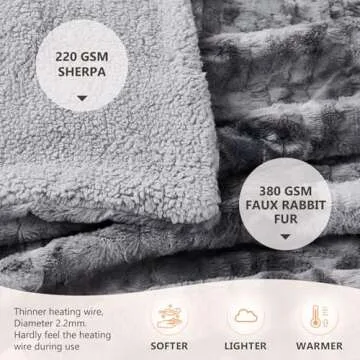 Homemate Heated Blanket Electric Throw - 50x60 Heating Blanket Throw 5 Gears Auto-Off 10 Heat Levels Heat Blanket Over-Heat Protection Luxury Faux Fur Sherpa Heater Blanket Electric ETL Certification