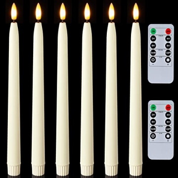 Homemory 11" Waxy Flameless Taper Candles with Remote Timer Dimmer - 6 Pcs Ivory LED Candlesticks