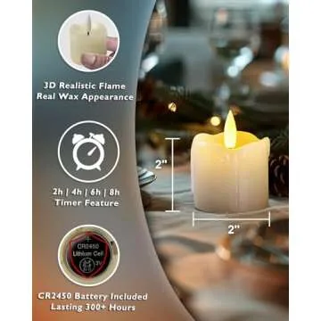 - Remote Control Functionality: Control all candles easily with the included remote; features include a timer with 2h, 4h, 6h, or 8h settings to automate your lighting easily.