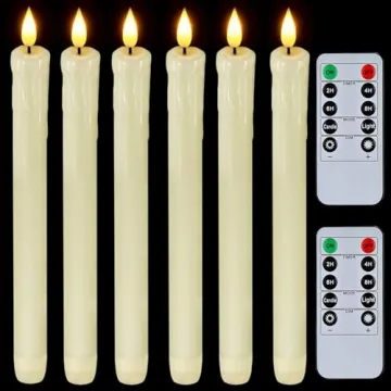 Show more Introducing the Homemory Real Wax LED Flameless Taper Candles with Remote Control, the perfect solution for creating an enchanting atmosphere in any environment. These exquisitely crafted candles combine true elegance with modern convenience, featuring two light modes—a soft flickering mode that mimics a real flame, and a steady light mode for practical illumination. Bid farewell to the dangers of traditional candles, as these LED wax candles are powered by batteries, ensuring a mess-free experience without wax drips or smoke, while maintaining an authentic look.