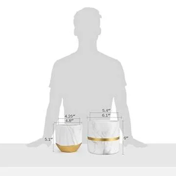 homenote White Ceramic Flower Pot Garden Planters 6/4.8 inch Pack 2 Indoor, Plant Containers with Marble Texture and Gold Detailing