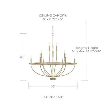 Show more Introducing the stunning Greyson Chandelier, an exquisite lighting fixture that transforms any space into a realm of elegance and sophistication. With its grand dimensions of 40 inches high and 40 inches wide, this chandelier immediately draws the eye and creates a striking focal point in your home. Weighing in at 13.5 lbs, it is designed for stability while projecting a captivating ambiance in any room.