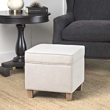 Homepop Classic Square Storage Ottoman with Lift Off Lid in Cream Woven