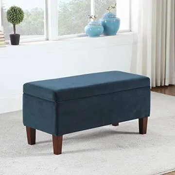 HomePop Large Upholstered Rectangular Storage Ottoman Bench with Hinged Lid, Navy