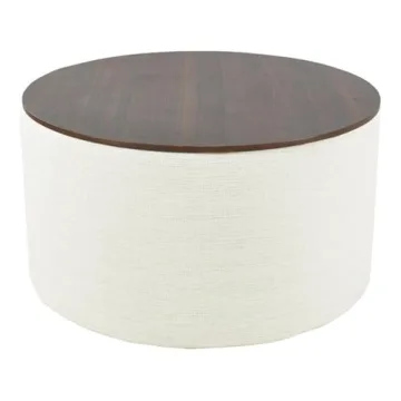 Show moreIntroducing the HomePop Modern Fabric Storage Ottoman with Wood Top — a chic and functional addition to your decor. With its charming stain-resistant cream woven fabric and stunning wood grain laminate top, this ottoman is not just a furniture piece but a fashionable solution for modern living. This versatile ottoman measures 30 inches wide x 30 inches deep x 16 inches high, making it the ideal size for any room in your home. Its neutrality in color allows it to seamlessly blend in with a variety of decor styles, from contemporary to traditional.
