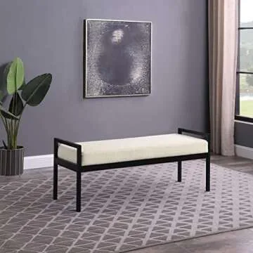 HomePop Modern Metal Bench|Bench for Living Room & Bedroom | Decorative Home Furniture -Sherpa Cream