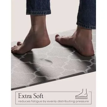 Show more Introducing the Homergy Anti Fatigue Kitchen Mats – a perfect blend of style and functionality! Designed with your comfort in mind, this 2-piece set includes a smaller mat measuring 17.3" x 30.3" and a larger mat at 17.3" x 59". At a thickness of just 0.4" (10mm), these mats strike the perfect balance, providing excellent support without being overly bulky. Crafted from high-quality memory foam, they effectively alleviate pressure on your feet and joints, making long hours spent in the kitchen or home office a comfortable experience.