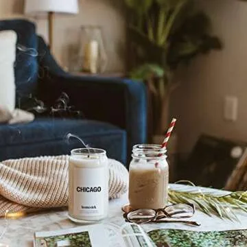 Show more Transform your space with the enchanting Chicago Candle from Homesick, designed to encapsulate the soulful essence of the Windy City. This beautifully crafted candle weighs 13.75 oz and is more than just an aromatic delight; it embodies the spirit and memories of Chicago. Feel the gentle embrace of a freshwater breeze, intricately laced with the delicate allure of jasmine bouquets. The sophisticated blend awakens your senses with rich top notes of sandalwood and bergamot, transitioning into the heartwarming mid notes of fresh water and chocolate, before settling into a grounding base of jasmine and musk.
