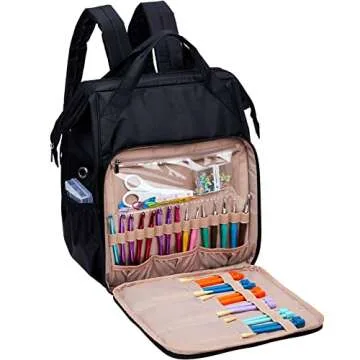 HOMEST Crochet Bag Organizer, Large Capacity Yarn Storage, Knitting Bag for Carrying Projects, Crocheting Hooks, Suppliers, Needles and Accessories, Black