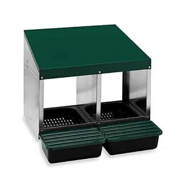 Show more Introducing the ultimate solution for poultry enthusiasts: the roll-away metal nesting box designed to protect your eggs! This innovative product ensures that each precious egg rolls forward beneath the secure lid, keeping them safe and intact until it’s time for collection. Built by a trusted brand in the farming community, this nesting box's unique design promotes a safe and comfortable laying area for your hens.