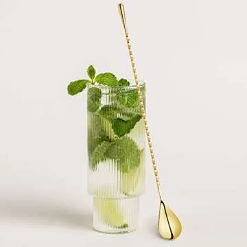 Homestia 12-Inch Gold Bar Spoon, 304 Stainless Steel Cocktail Spoon for Layering Long Spiral Handle Mixing Spoon Stirrers for Drink