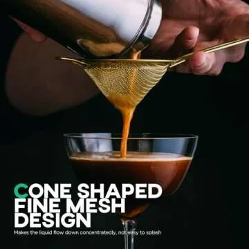 The unique cone-shaped fine sieve design serves as an efficient filtration tool, expertly capturing even the tiniest particles. You can now achieve smooth, spill-free results in your beverages and dishes. Its practical hook feature provides stability, allowing it to perch securely over cocktail glasses or mixing bowls, ensuring hands-free operation and reducing the risk of messy spills.