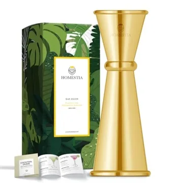 Introducing the Homestia Bar Jigger, the ultimate tool for both professional bartenders and home mixologists that elevates your cocktail-making game. Crafted from durable 18-8 304 stainless steel, this jigger features a sleek double-sided design that offers versatile measuring capabilities in both ounces and milliliters. Each side has precise etched markings that are permanently laser engraved, ensuring longevity and accuracy. With a maximum capacity of 2 ounces (60...