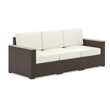 Show moreExperience ultimate comfort with the Homestyles 6800-30 3-Seat Sofa, designed for modern living. This beautifully crafted sofa features a stunning beige and brown fabric, adding a touch of elegance to your home decor. Made with durable weatherproof synthetic rattan, it is built to last season after season, ensuring your investment is protected against the elements. The stain- and fade-resistant cushion fabric is specifically engineered to handle both sun and rain, making it a perfect choice for outdoor settings or lively indoor spaces. The arms of the sofa are constructed from solid acacia wood, known for its natural water-resistance, which enhances the sofa's longevity and style. With a powder-coated steel frame, you can trust in a sturdy foundation that offers great support. Note that some assembly is required, and it conveniently ships in several boxes, which may arrive separately.