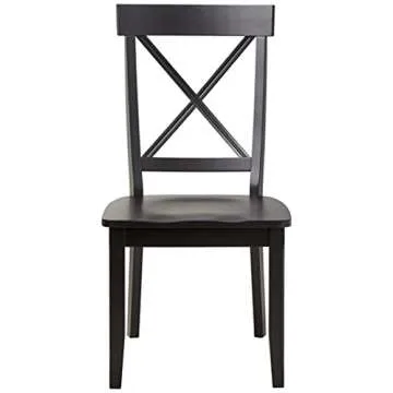 Show moreThe Homestyles Blair Black Dining Chairs set is the ultimate combination of style and comfort, designed perfectly to elevate your dining experience. These two beautifully crafted chairs feature a sleek black finish, which seamlessly fits any modern or traditional dining decor. Constructed from durable hardwood, these chairs are built to withstand the test of time while remaining easy to clean, ensuring that your furniture continues to look stunning for years to come. The expertly designed seat and back contours cradle the user, offering unparalleled support and comfort, making them perfect for long dinner conversations.