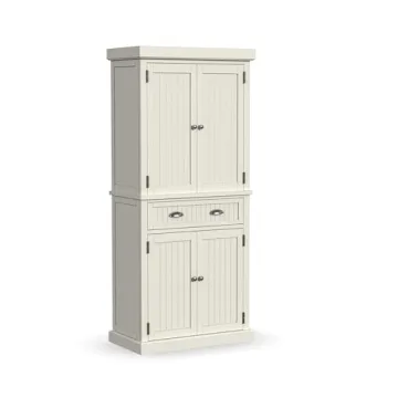 Assembly is straightforward, and with the installation manual provided in PDF format, you can put it together with ease. Spanning ample storage, this pantry includes a spacious storage drawer and two cabinet doors which conceal two adjustable shelves each, allowing you to customize the interior space to suit your needs. Whether you're storing canned goods, kitchen appliances, or everyday essentials, the Homestyles Nantucket Pantry is sure to accommodate all your needs.