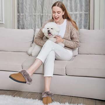 Show more Step into the ultimate comfort and style with our luxurious slip-on slippers, expertly crafted for those who cherish relaxation. Our slippers feature a high-density memory foam padding that cradles your feet in a gentle embrace, providing a soft yet snug fit that adapts over time. The soft micro suede upper not only enhances warmth but brings a touch of elegance, making them suitable for lounging around the house or grabbing the mail in style.
