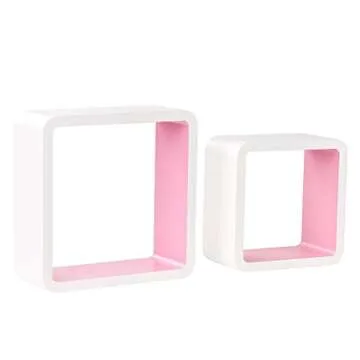 Homewell Set of 2 Cube Floating Shelves, Wood Wall Shelves for Home Decoration, Storage Display Rack, White+Pink.