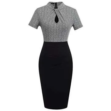 Show moreIntroducing the HOMEYEE Women's Short Sleeve Business Church Dress B430, a sophisticated addition to your wardrobe that combines elegance with versatility. Designed to suit both professional and formal events, this vintage business church pencil dress is perfect for those who desire a chic look without compromising on comfort. The classic knee-length cut paired with short sleeves ensures you stay stylish and appropriate for various occasions, making it a must-have for every woman's closet. The convenient back zipper allows for easy wear while maintaining a sleek silhouette that flatters all body types.