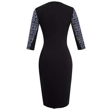 Introducing the HOMEYEE Women's Stretch Tunic Pencil Sheath Dress U837, a fashion-forward masterpiece that combines elegance and versatility in an exquisite design. This dress features a v-neck cut and a flattering 3/4 sleeve that provides both comfort and style, making it an essential addition to any wardrobe. The zipper back not only enhances the overall chic appeal but also facilitates easy wear, while the furcal hem adds a distinctive flair, shaping a captivating silhouette.
