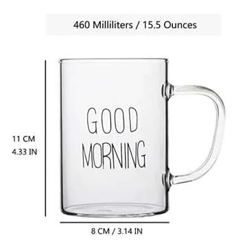HOMEYES 460 ML 15.5 OZ Good Morning Clear Glass Cup For Coffee/Beer/Milk/Tea/Water