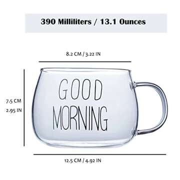 HOMEYES Glass Coffee Cups Clear Glasses Mug Tumbler for Drinking Beer Tea Water (Good Morning)