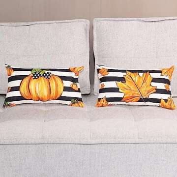 HOMFREEST Fall Pumpkin Throw Pillow Covers 12x20 Inch Set of 2 Autumn Stripe Maple Farmhouse Harvest Pillowcases Decorative Cushion Cases for Sofa Couch