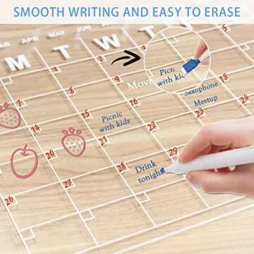 HOMiDEK Acrylic Magnetic Calendar for Fridge, Reusable Clear Refrigerator Dry Erase Board, 2 Set 17"x12" Acrylic Whiteboard with 5 Colors Markers & Rag