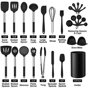 Homikit 27 Pieces Silicone Cooking Utensils Set with Holder, Kitchen Utensil Sets for Nonstick Cookware, Black Kitchen Tools Spatula with Stainless Steel Handle, Heat Resistant