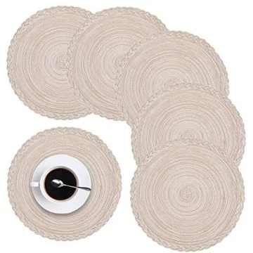 Show more Transform your dining experience with the Homing Round Placemats Set of 6, where functionality meets style! These vibrant, hand-made woven placemats are crafted from a blend of 80% cotton and 20% polypropylene, ensuring not just a pop of color but lasting durability. Measuring 14 inches (36 cm) in diameter, they effortlessly accommodate everything from delicious entrees to elegant centerpieces. Perfect for both casual meals and formal dining, these placemats are the ideal accessory to elevate your table setting.