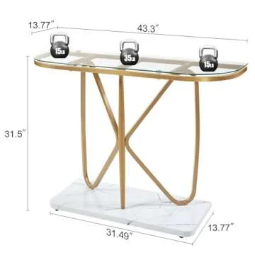 HOMISSUE Console Table, Modern Console Table with Tempered Glass Top and Metal Frame, Glass Entryway Table with Marbled MDF Base, Console Table for Entryway, Hallway, Living Room (Gold&Clear Glass)